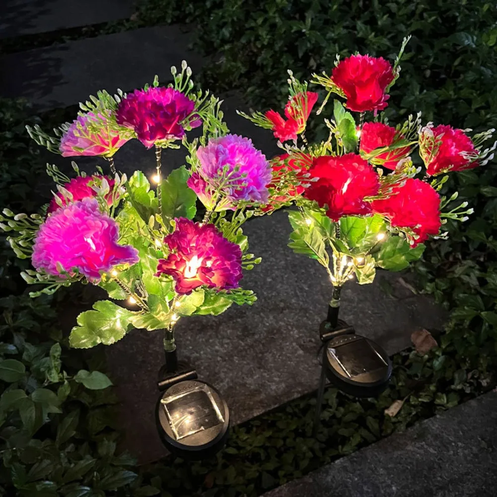 Illuminate your outdoor space with these elegant 70cm solar-powered carnation lights. Featuring IP65 waterproof construction and realistic flower design, they are perfect for decorating lawns, patios, balconies, pathways, or garden fences. Automatically charging during the day and glowing at night.