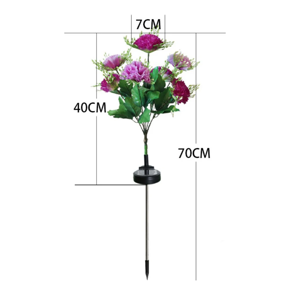 * Vibrant Color Options: Available in white, purple, pink, and multi-color, these solar carnation lights add a splash of color to any garden, patio, or walkway, enhancing the overall ambiance of your outdoor decor.