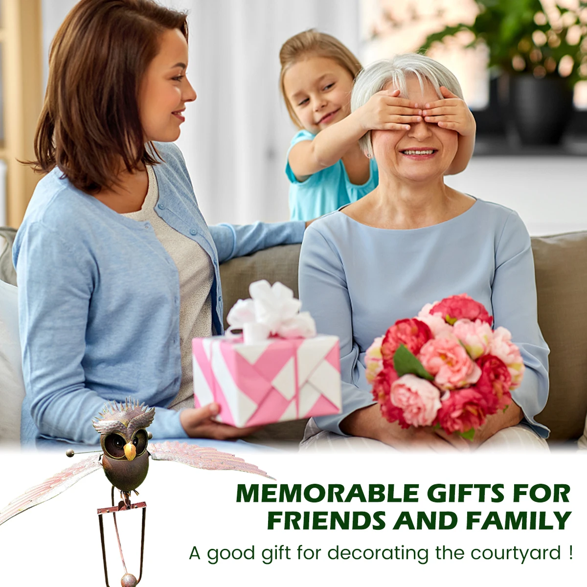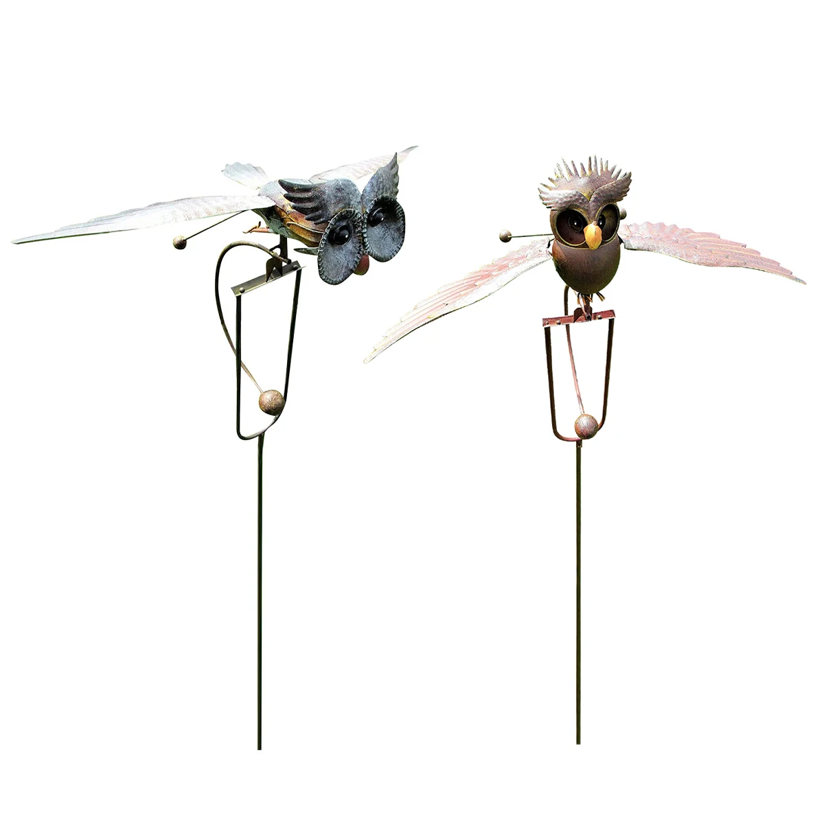 Add whimsical charm to your outdoor space with this weather-resistant metal owl wind chime spinner. Featuring flapping wings that move with the wind, it brings a playful, nature-inspired touch to gardens, lawns, or patios.