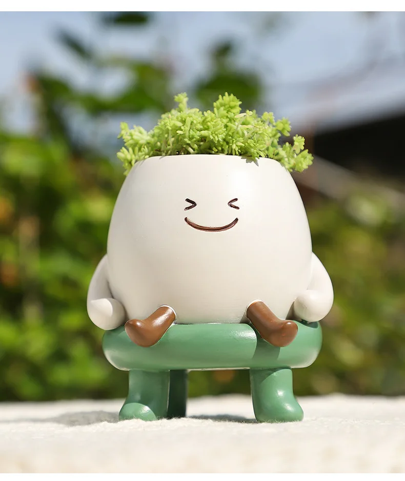 Add a touch of charm to your space with this adorable resin flower pot. Perfect for succulents or small green plants, it’s ideal for office desks, courtyards, or balcony décor. A creative way to bring nature into any modern setting.