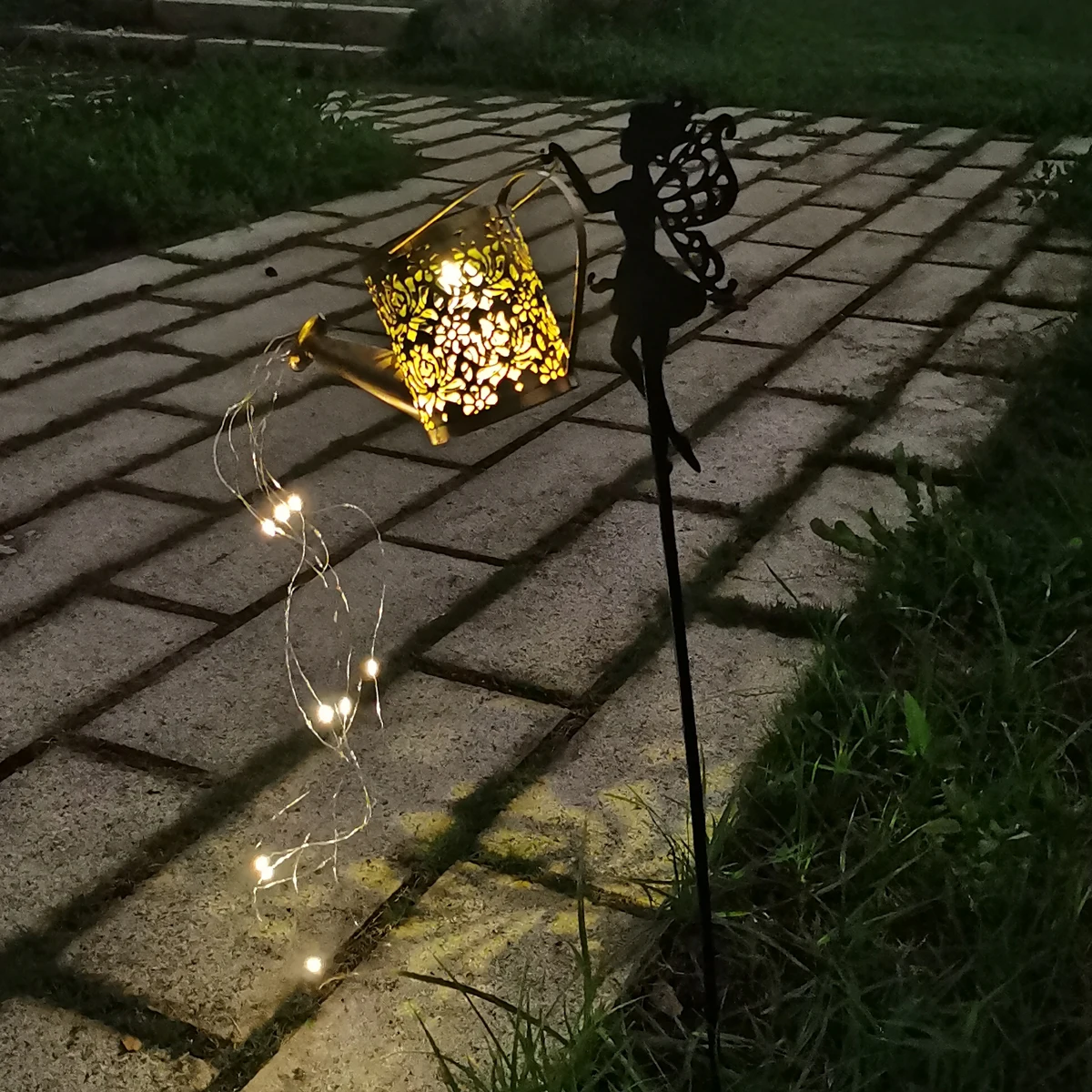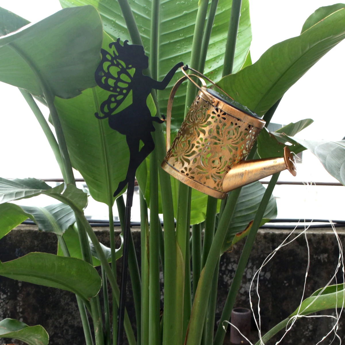 Solar Fairy Watering Can Garden Statue
