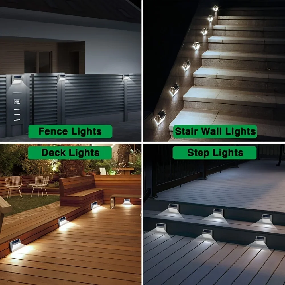 Easy Installation: Use screws and expansion screws to install solar staircase lights, or purchase double-sided (non insulating) adhesive to stick solar deck lights in a place that can be directly exposed to sunlight.