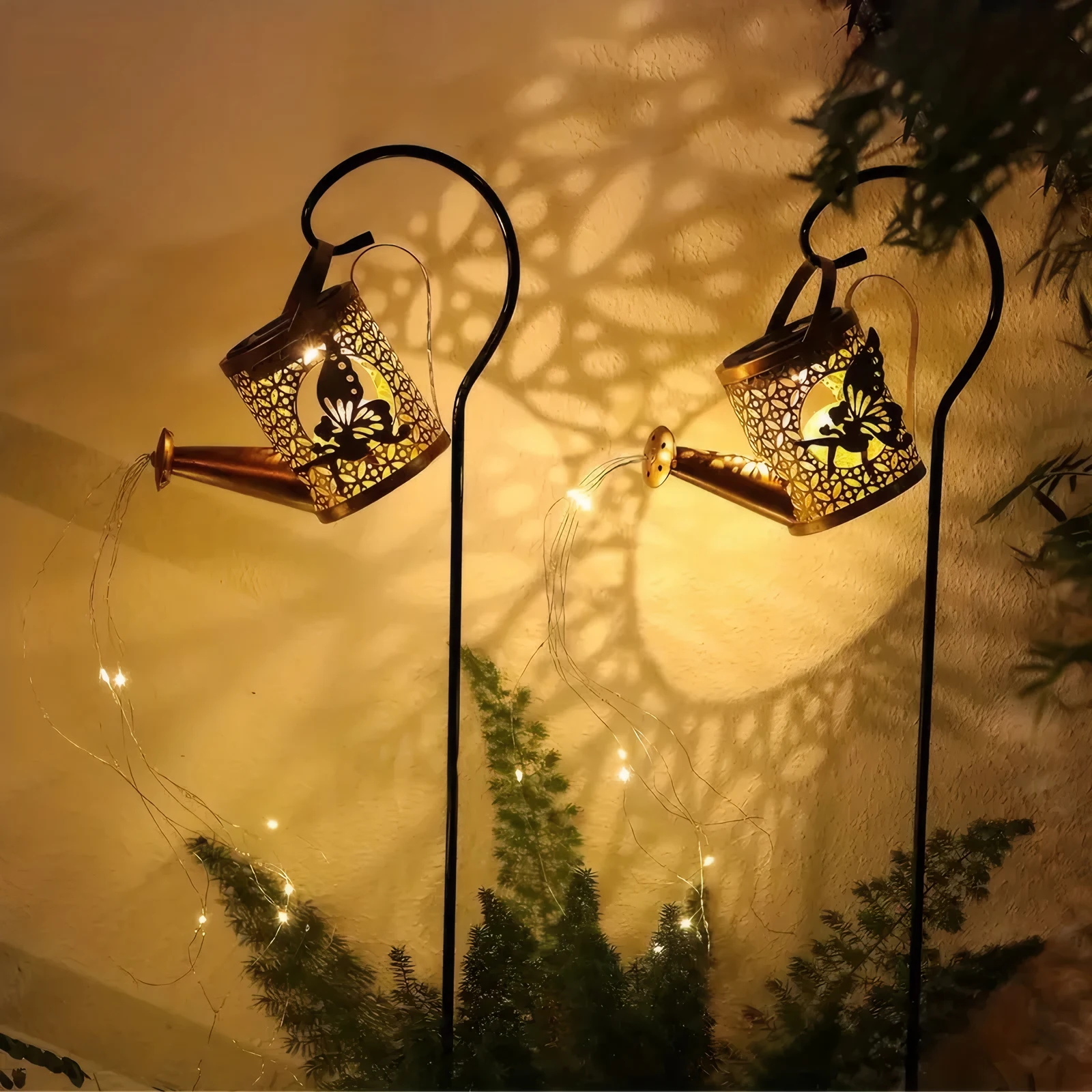 Create a magical garden scene with this solar-powered watering can light. Featuring cascading fairy lights that mimic pouring water, it’s IP65 waterproof and made of durable metal—perfect for decorating yards, villas, or patios with a whimsical glow at night.