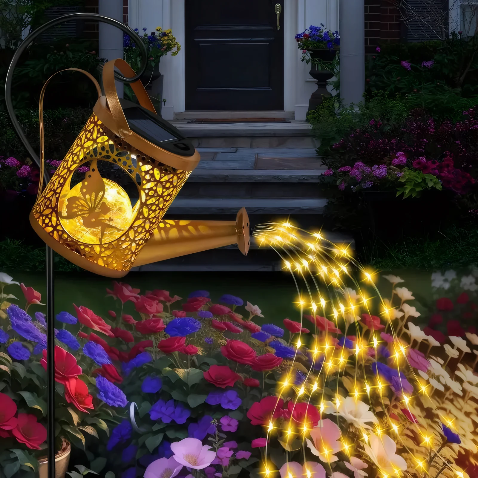 Solar Watering Can Light with Waterfall LEDs