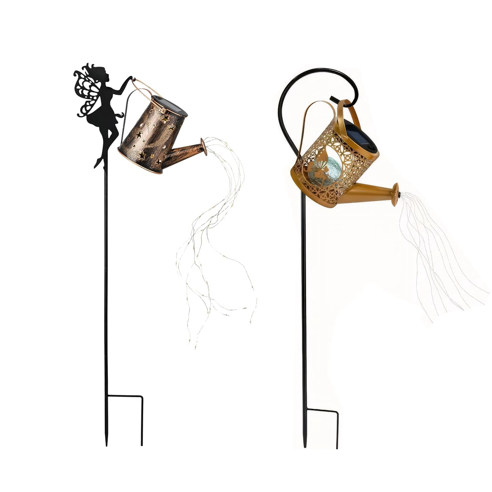 1.Whimsical Path Light: Illuminate your space with our solar garden kettle light featuring a fairy design, handcrafted for detailed perfection. This enchanting piece captures a fairy holding a shower watering can lights, adding a touch of magic to your surroundings.