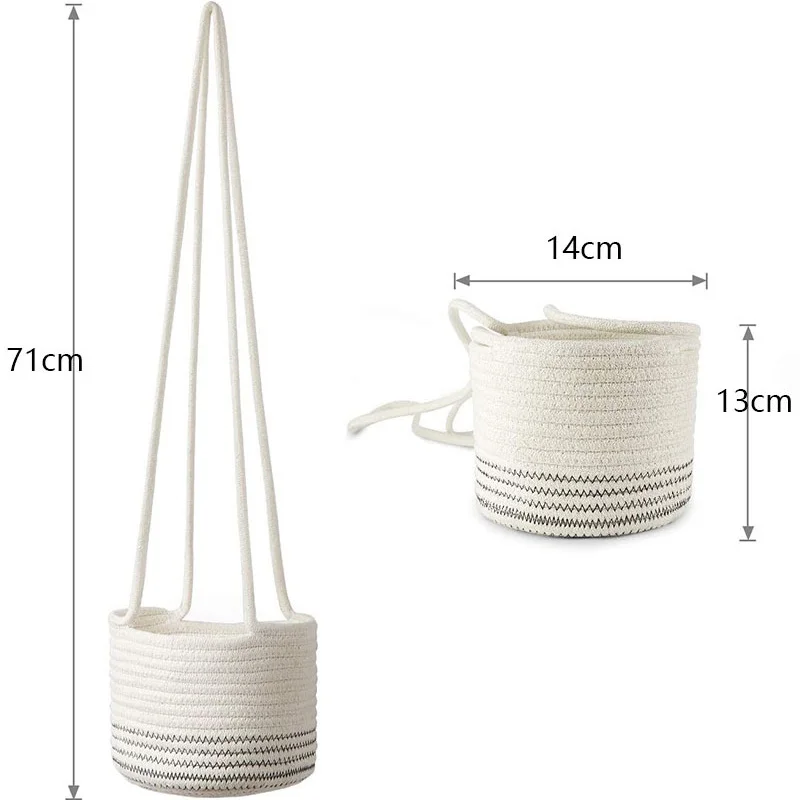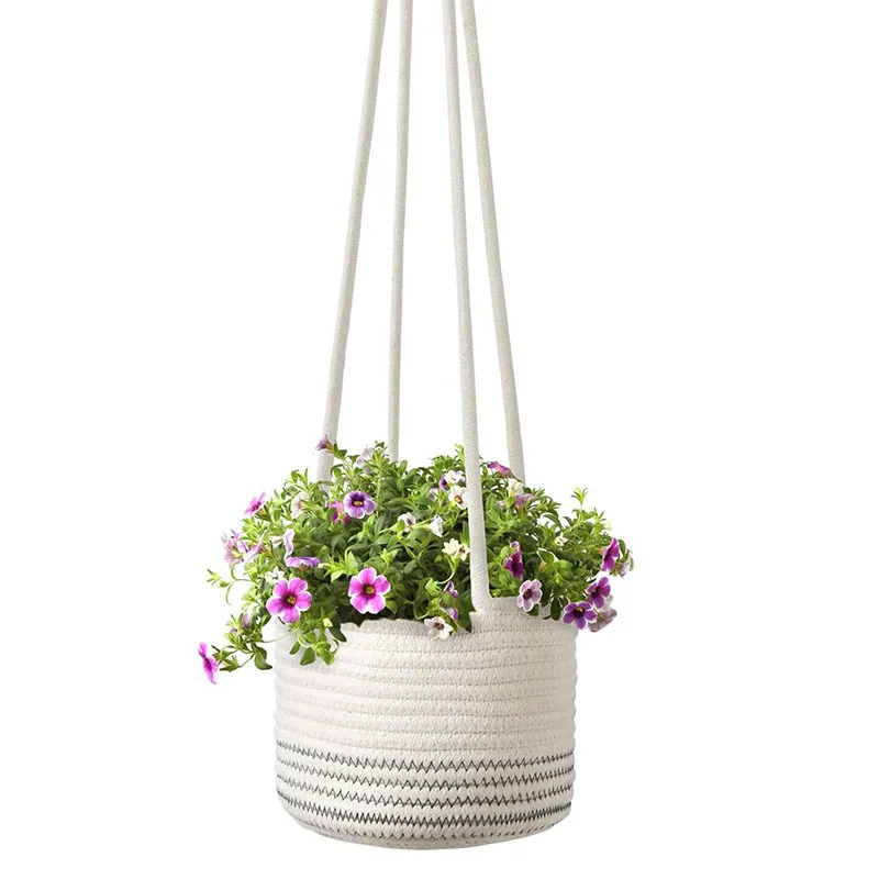 - Hanging plant basket is great for display potted plants and flower pots, adds modern flair and minimalist to your home decor. To hung with sturdy cotton strings that displays your favorite potted plants and flower pot in the air or window side very well.