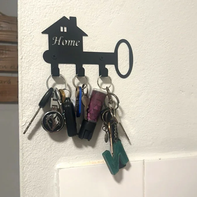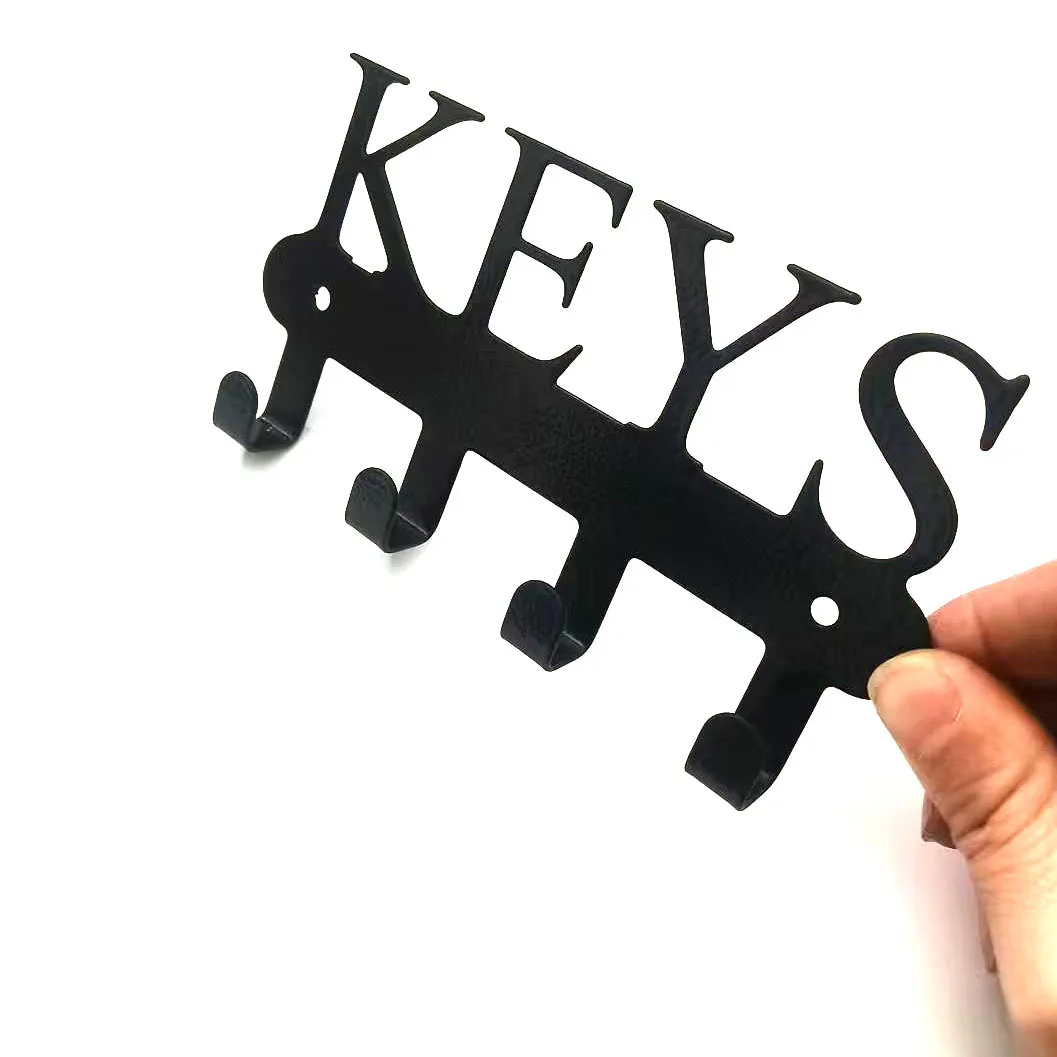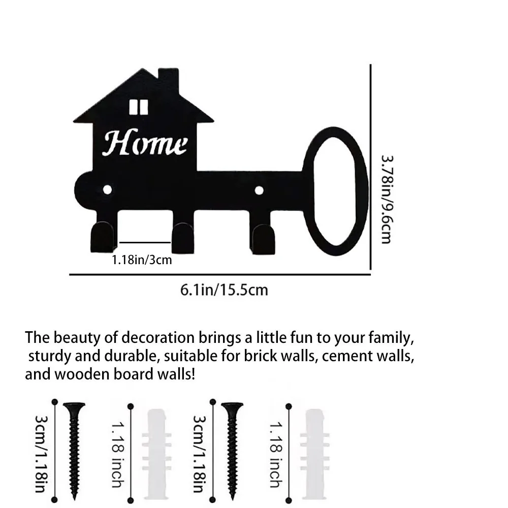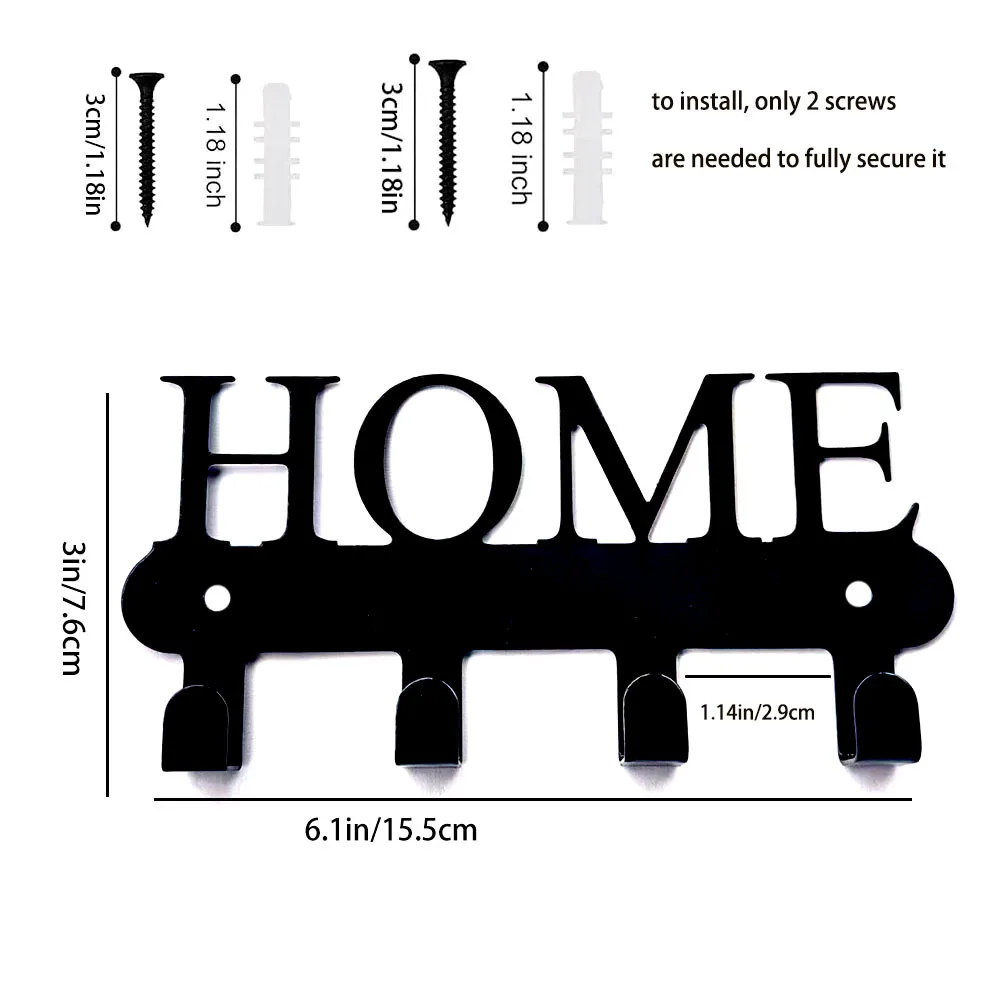 Keep your entryway neat and beautifully decorated with this HOME-style metal key hanger. Designed with a sleek cutout art pattern, it features multiple hooks for storing keys, hats, small accessories, and light clothing. Perfect for organizing everyday essentials while adding a stylish touch to your wall décor. Durable iron construction ensures long-lasting use, making it a functional and decorative addition to any home.