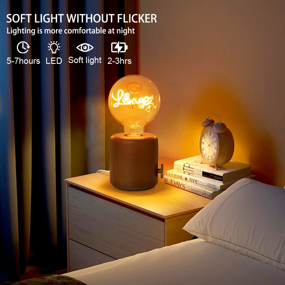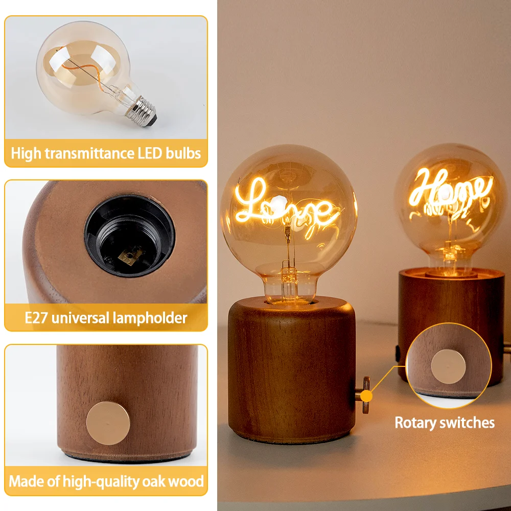 • Retro Look: E27 Retro Wooden Base Desk Lamps create a vintage and romantic atmosphere in your room. LED bulbs emit natural warm white light. Perfect lighting for indoor/outdoor, patio, backyard, patio, bistro, cafe, garland, garden, wedding party, Christmas and various occasions or events.