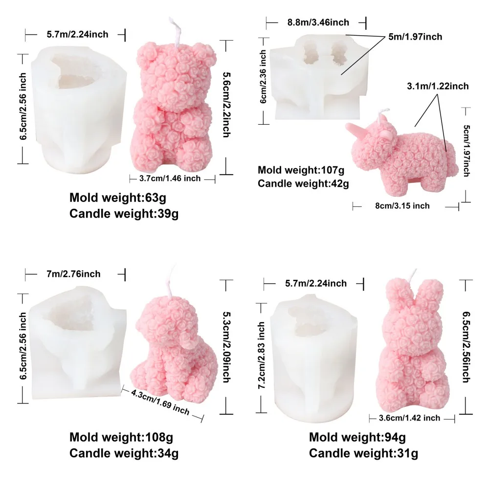 Design charming handmade candles with this rose bear silicone mold, perfect for romantic gifts and decorative pieces. Featuring a detailed 3D rose bear design, it allows you to create elegant scented candles for Valentine’s Day, weddings, birthdays, or home décor. The flexible silicone material ensures easy release and clean results, making it suitable for both beginners and experienced DIY creators.